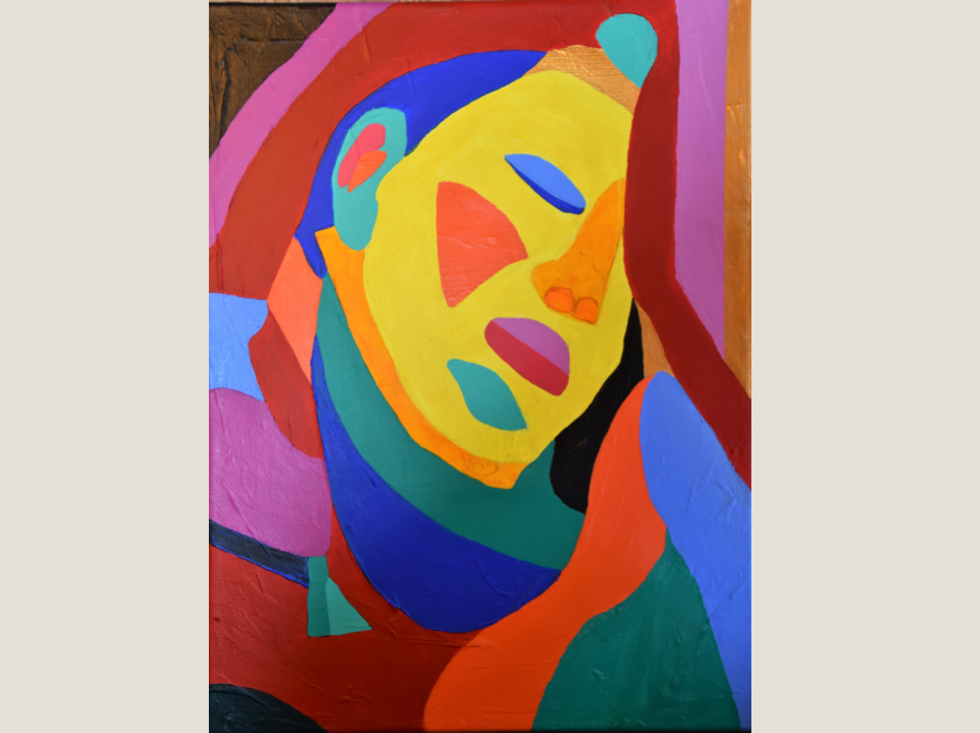Kunstudvalget Åby Bibliotek / Åby Biblioteks VennerI et farverigt og ekspressivt udtryk hylder han kvindens naturlige skønhed.
