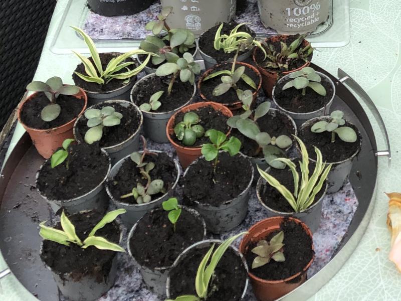 Vi laver nye små potteplanter af planter vi har.