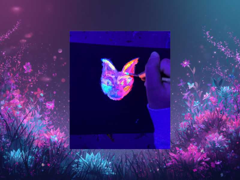 Undervejs får vi kyndig og inspirerende hjælp af kunstner Didde Rose, som guider os i arbejdet med farver, former og det fortryllende selvlysende udtryk.