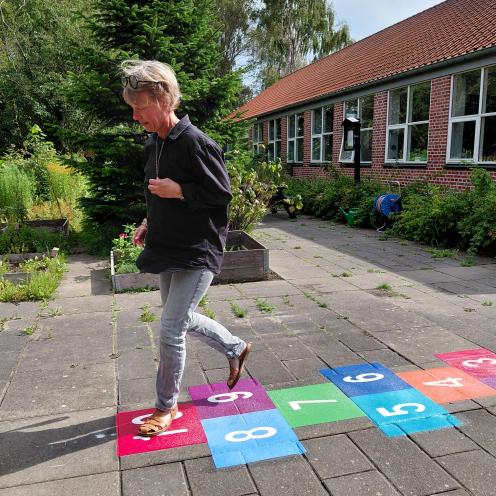 JI Sport har monteret vores hoppeperson på fliserne i bibliotekshaven. Den er SÅ fin og kan ses direkte fra bibliotekets foyer. Senere på året laver vi hinkestensworkshop – en dejlig vinteraktivitet.