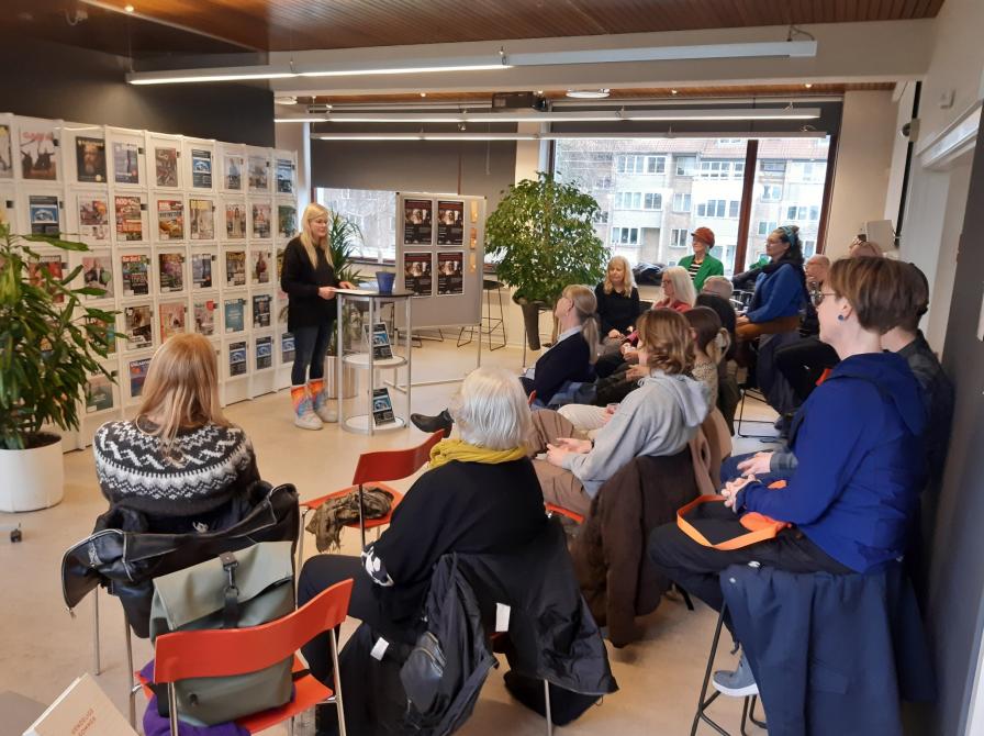 De vedhæftede billeder er fra receptionen for de færdigskrevne tekster på Viby Bibliotek. Digtene blev herefter givet videre til Michael Møller, som gjorde dem til sange i samarbejde med bl.a. Søren Møller, og det blev til en rigtig fin og bevægende koncert under LiteratureXchange.